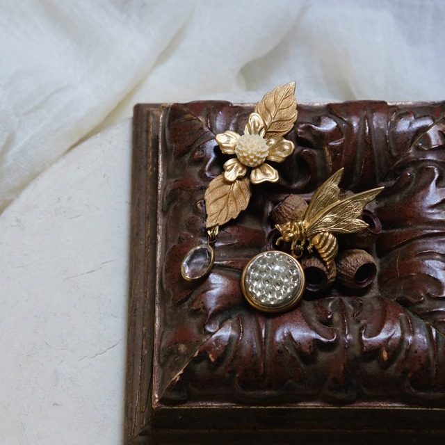 materials: 真鍮、freshwater pearl、ヴィンテージ カメオ、ヴィンテージ ガラスフラワー フラワー、ドイツ ガラス カボション、U.S エナメル 蝶々 length: 5cm weight: 5g / 7g *イヤリング(クリップ式・ネジ式)に変更可能ですので、ご希望のタイプをコメント欄でお伝えください。 梱包について オリジナルボックスに入れて大切にお届けします。 複数の商品をご購入いただいた場合は、大きいサイズのオリジナルボックスに梱包させていただきます。 ご注意点 * ご注文後、弊社のアクセサリーは基本的に一点ものおよび数量限定のため、返品・交換・キャンセルはお受けしておりません。ご了承の上、ご購入をお願いいたします。 *丁寧にお作りしてますが、ハンドメイド品になりますので、神経質な方はご購入をお控え下さいませ。 *ヴィンテージパーツを使用しておりますので、目立つキズや汚れ、褪せ、サビ、割れまた傷がある場合がございます。 汚れに関しては、可能な範囲でクリーニングしております。 * 真鍮生地の特徴として変色があります。お手元ご到着時にすでに、わずかな色むらがある場合がございます。 * お色が鮮明な写真を掲載するよう努力しておりますが、お客様ご使用のモニターによっても見え方が違う場合がございます。 ご理解の上お買い求め下さいませ。 •••••••••••••••••••••••••••••••••••••••• materials: raw brass, vintage glass flower, Germany vintage glass cabochon, freshwater pearl, U.S enamel butterfly length: 5cm weight: 5g / 7g *These can be changed to clip-on earrings.If you would like to request this change, please inform us in the remarks column before proceeding to payment. • We ship worldwide via Intl Small Packet with a tracking number. Delivery usually takes 7–21 days, depending on your location. If you prefer faster shipping, you can choose express shipping (EMS) at checkout, which typically takes 5–10 days, depending on your location. Please note that customs duties, taxes, or fees may apply, and are the buyer’s responsibility. Thank you for your understanding. •Each piece is handmade with carefully sourced vintage materials. Because these parts are delicate and one-of-a-kind, I assemble them like a small collage using high-quality jewelry adhesive, then secure everything with resin. Most vintage components can’t be soldered, so this method helps preserve their charm while creating durable, wearable art. • When taking photos of the earrings being worn, I use a different piercing post and temporarily attach it with special clay for photography purposes. Please note that after taking the pictures, I replace it with a new piercing post, and customers have the option to change it to clip-on earrings. I am mindful of hygiene and take this matter seriously. •Most of the parts used are vintage and may show some flaws. Please understand this before purchasing. •Ava Adore is entirely handmade and not mass produced. There may be slight variations and unique imperfections, however this ensures each pair of earrings is one-of-a-kind. Color may vary slightly to what appears on-screen. Examples of the imperfections may include fingerprints, small bubbles, slight difference in drop length, or other marks that in no way detract from the accessory's look and design. •Our accessories come in our original box. We pack orders of more than one item together in our original bigger box.