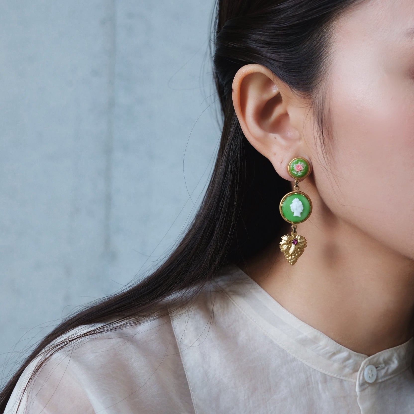 materials: 真鍮、ヴィンテージ Germany ガラス ストーン・1920s ガラスカメオ、スワロフスキー