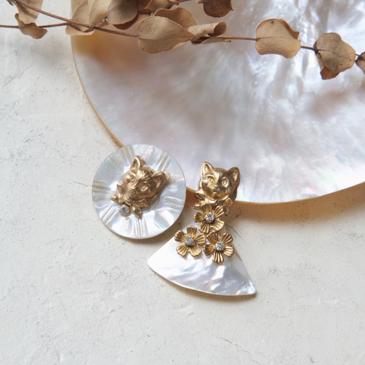 materials: 真鍮、ヴィンテージ フランス 淡水シェル/パール、スワロフスキー