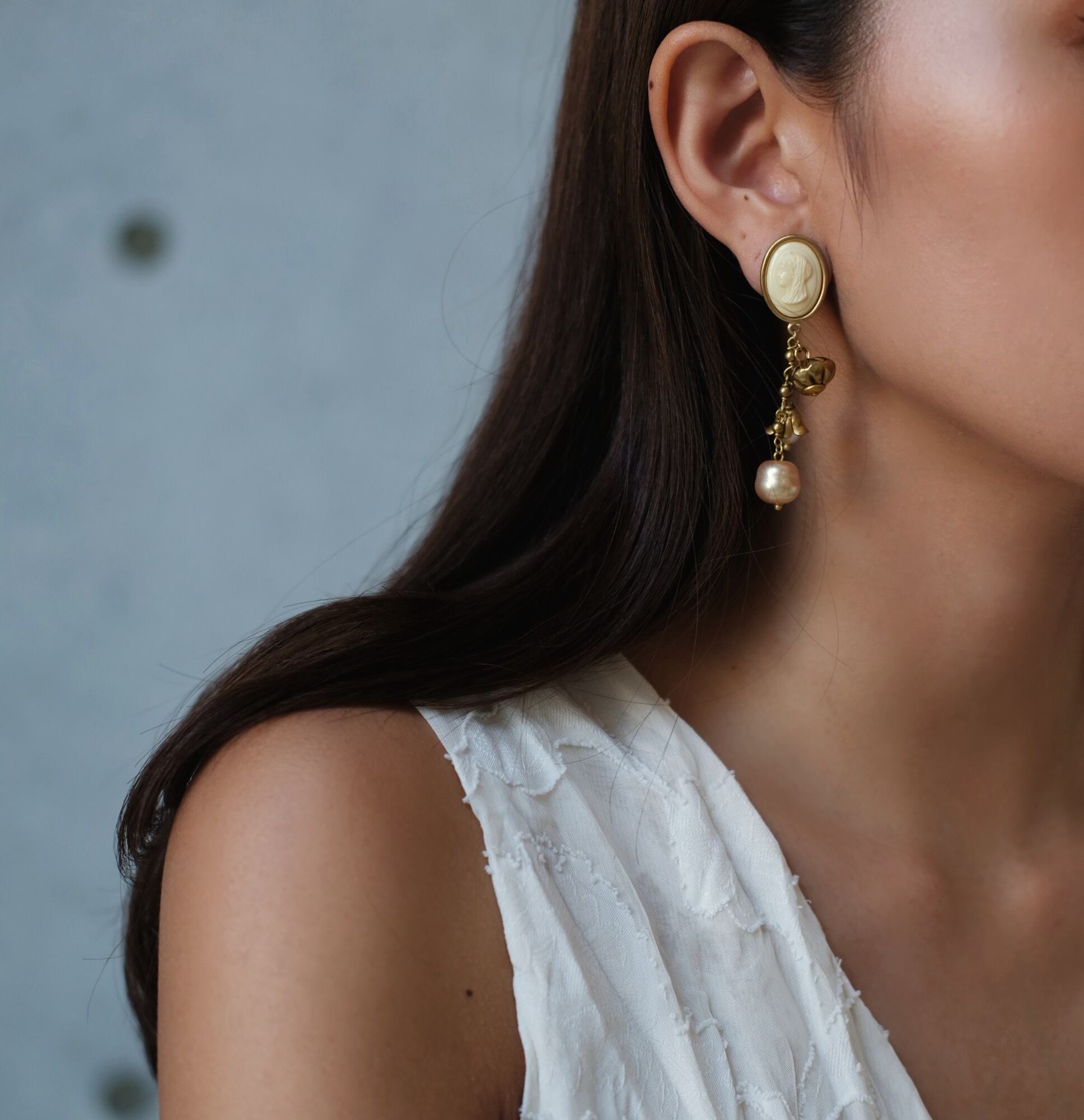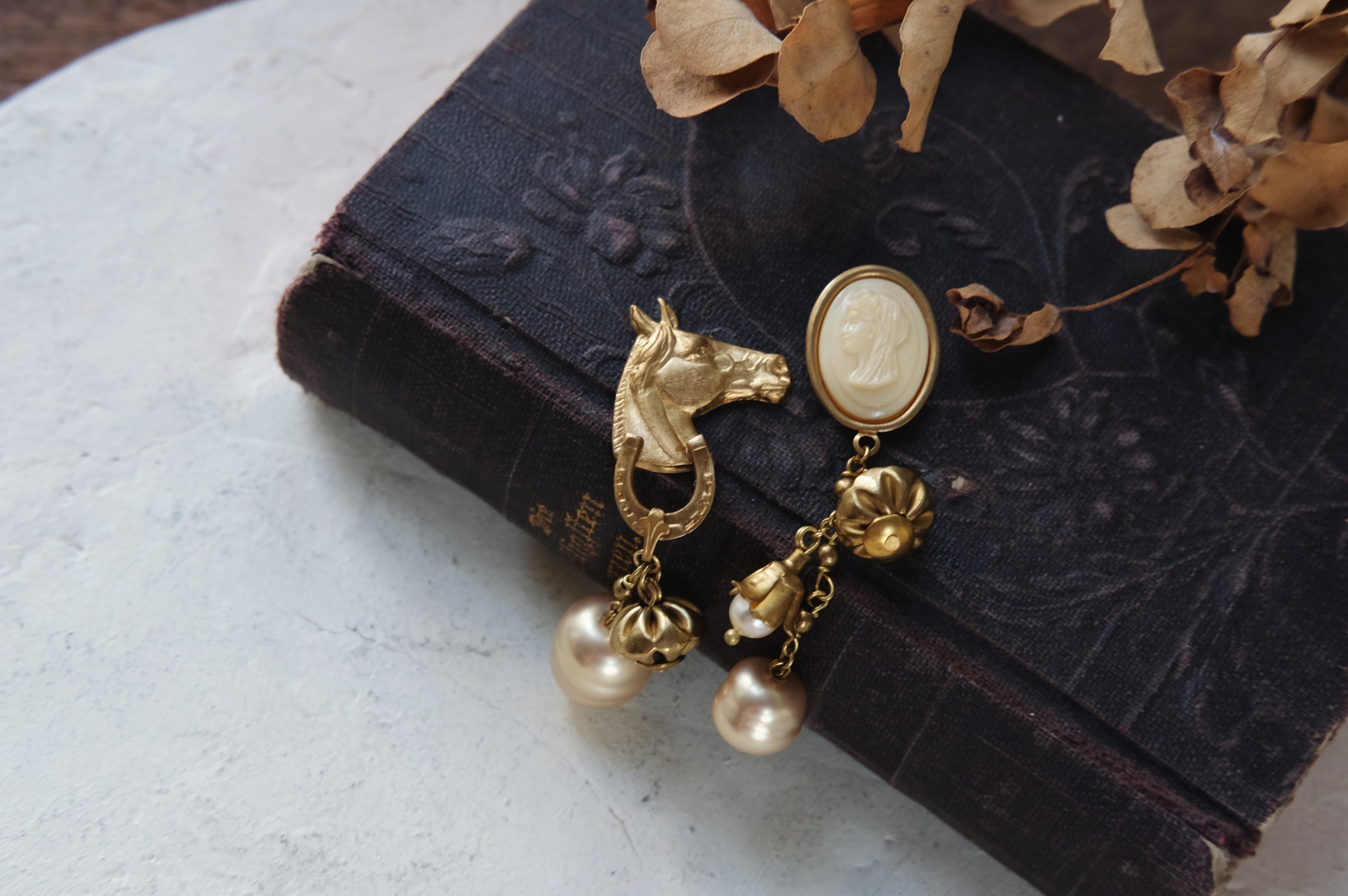 materials:真鍮パーツ、ドイツ ヴィンテージ カメオ、ヴィンテージ ガラス パール