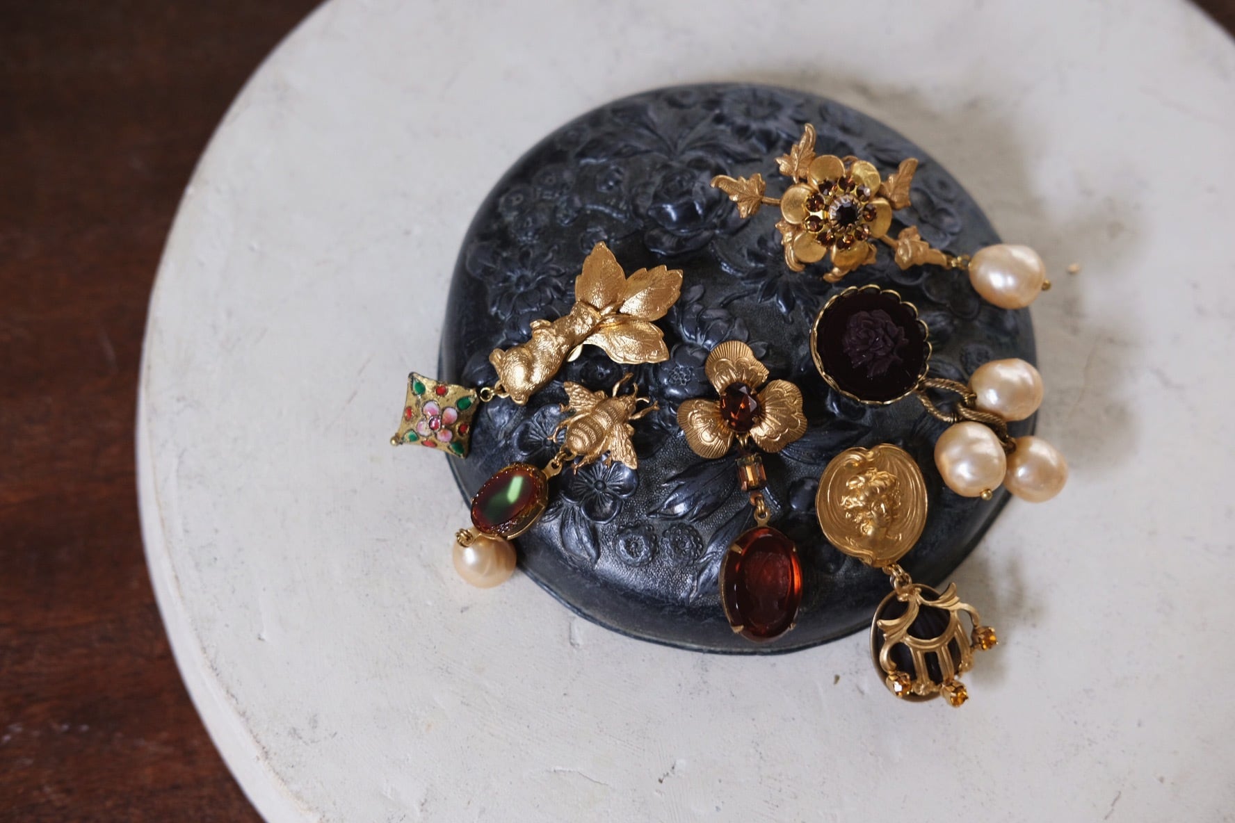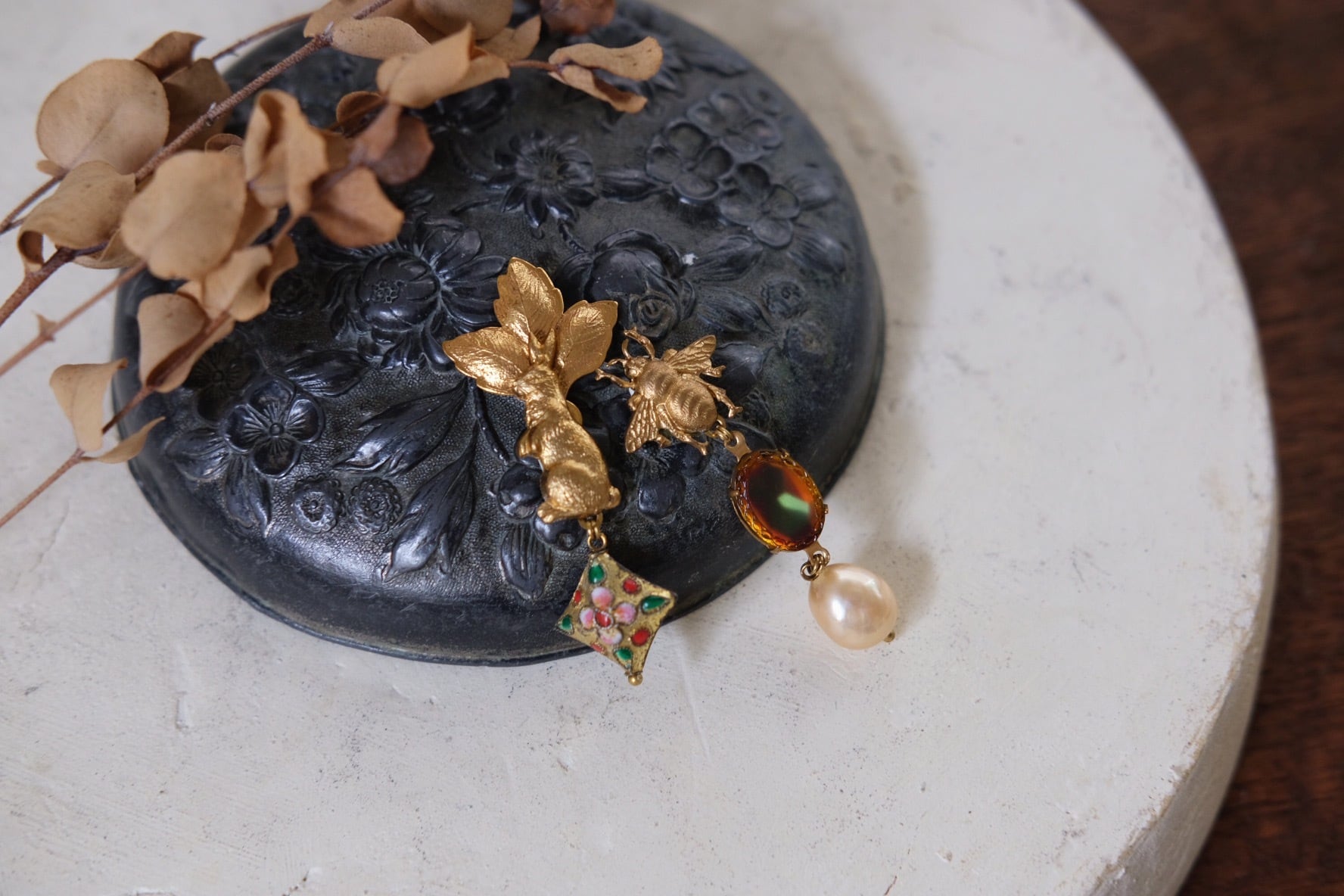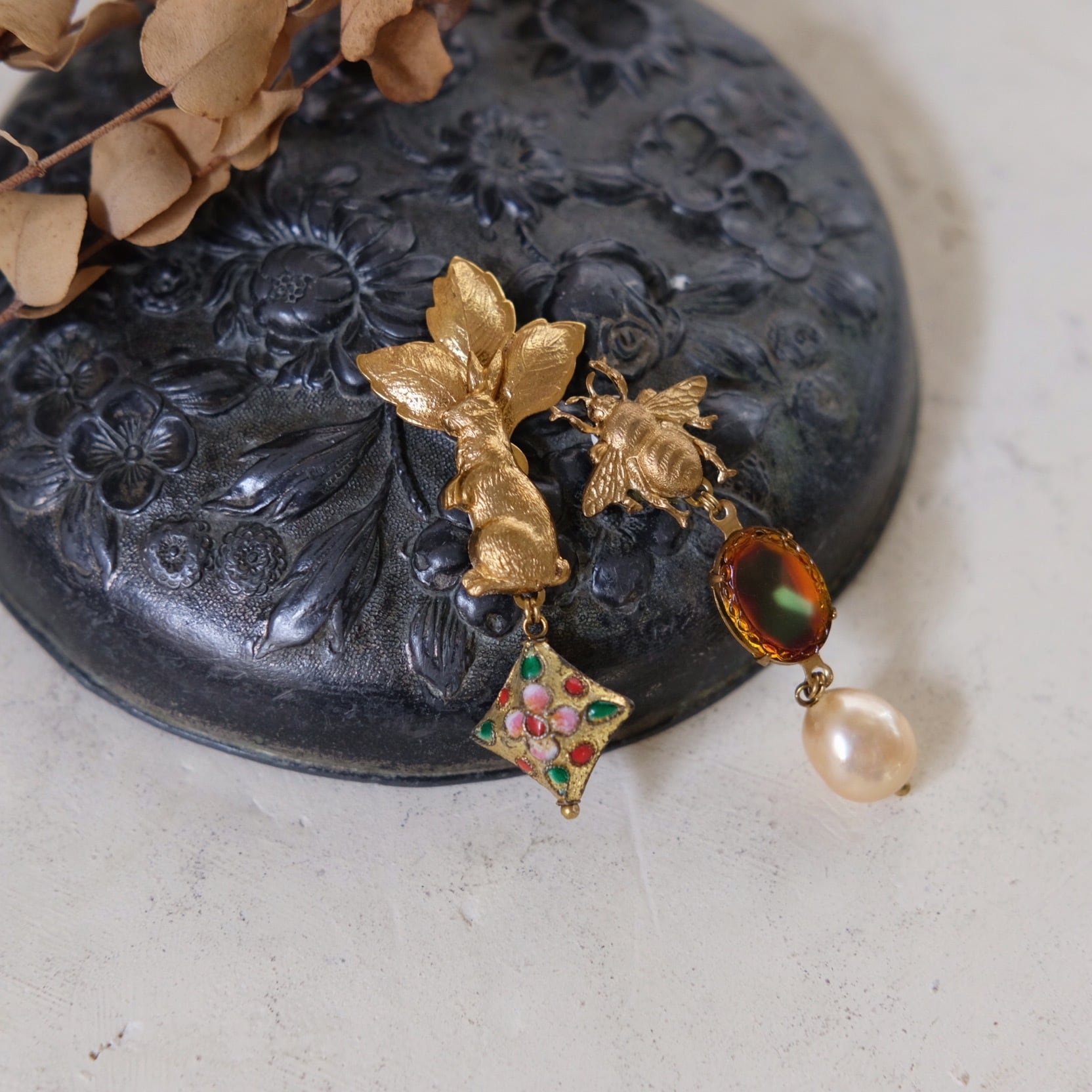materials: 真鍮、Vintage Cloissone、ドイツ ガラスカボション、ガラスパール