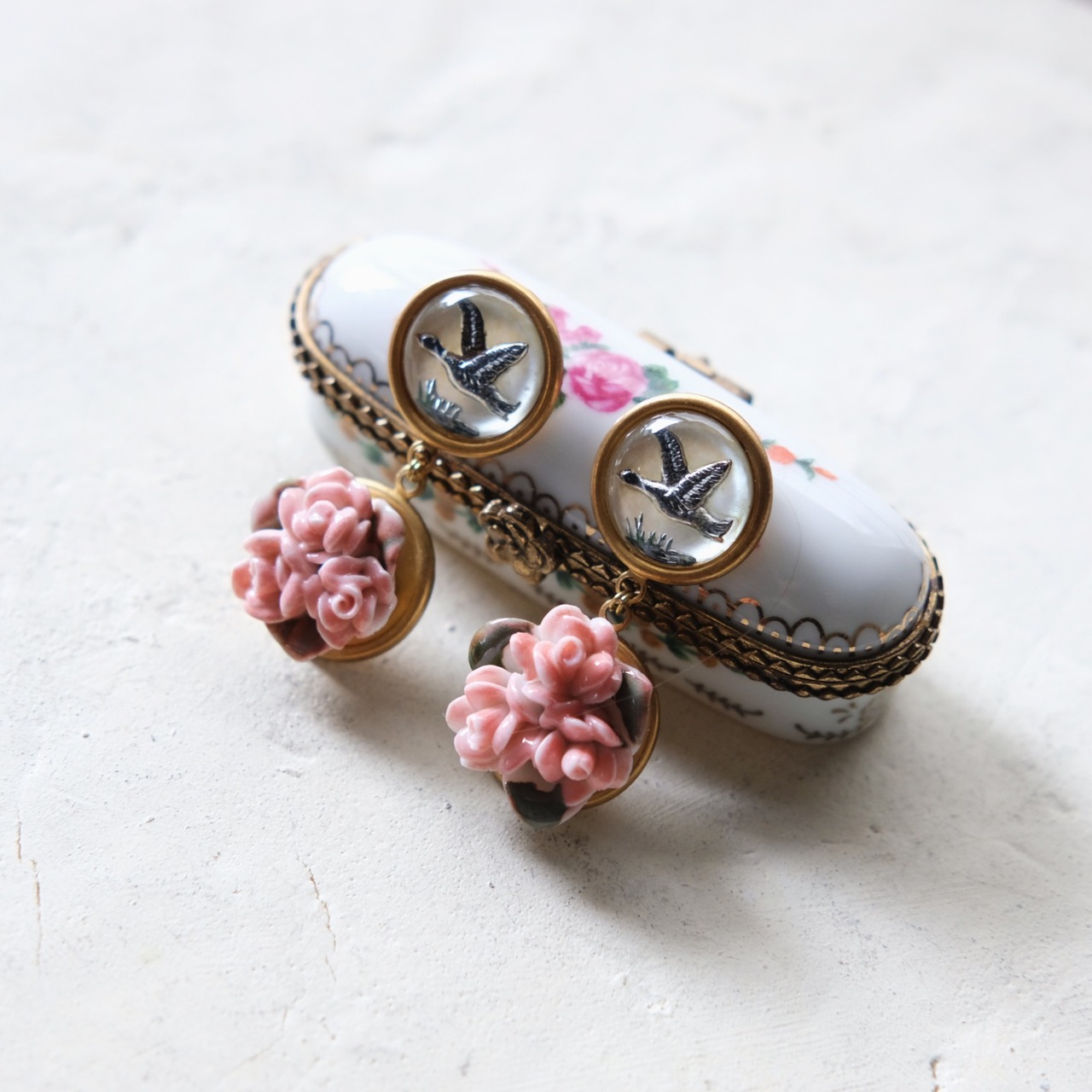 materials: 真鍮、ドイツ ヴィンテージ インタリオ、U.S ヴィンテージ 磁器フラワー