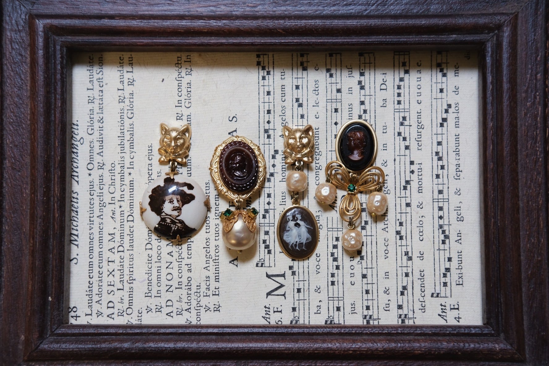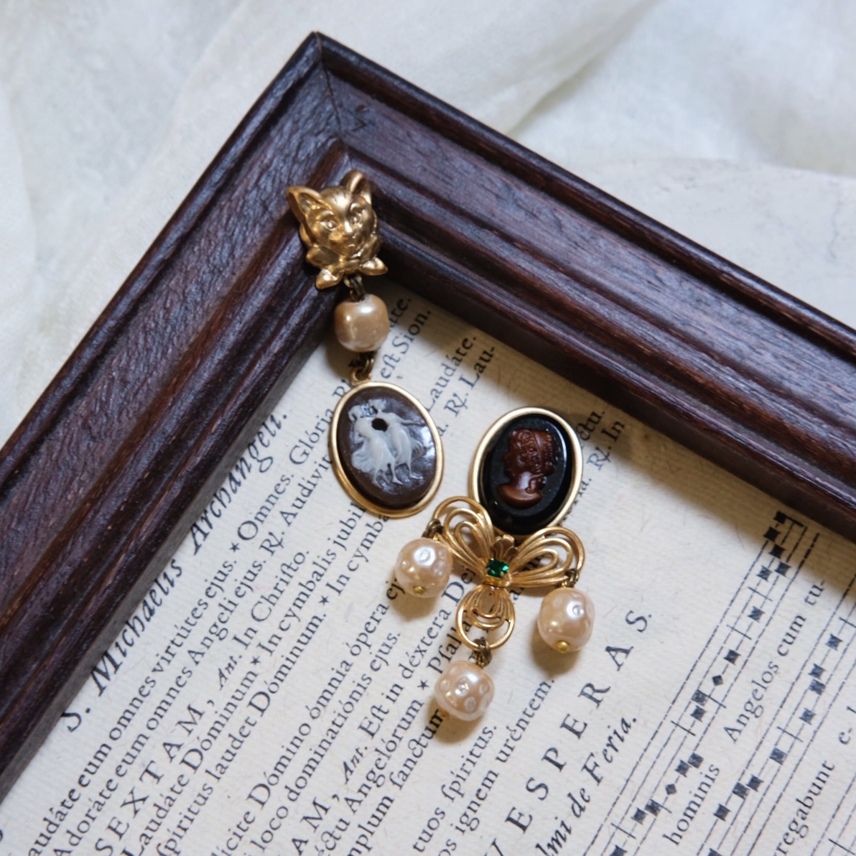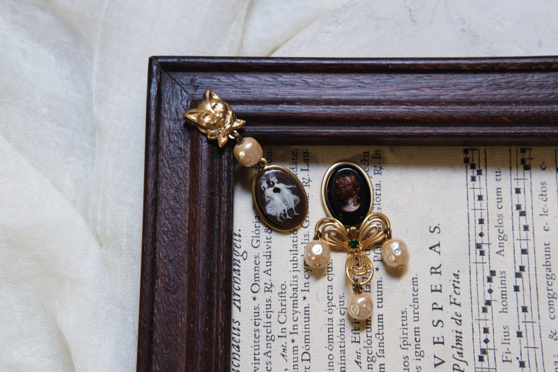 materials: 真鍮、バロック ガラス パール、スワロフスキー、アンティーク ドイツ カメオ