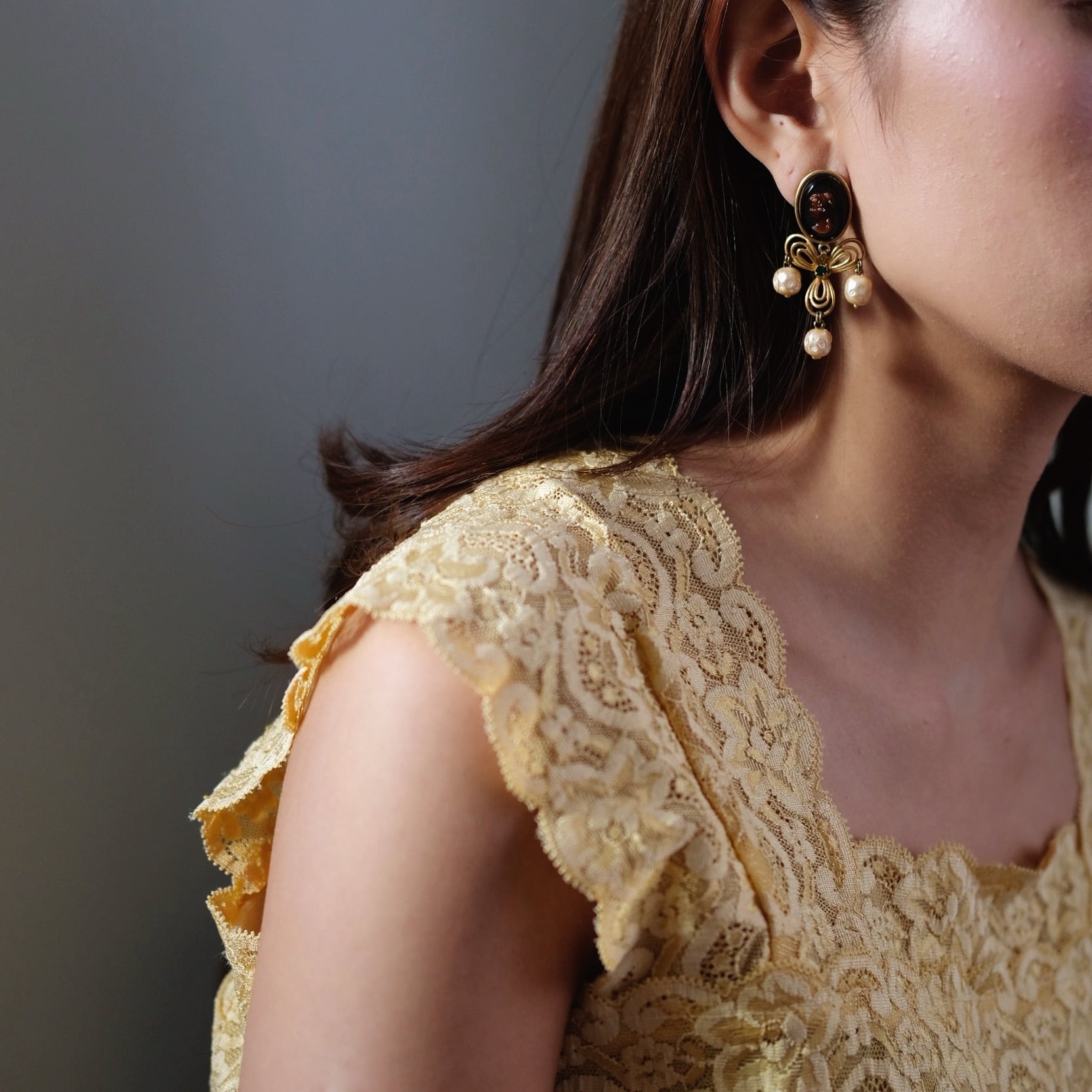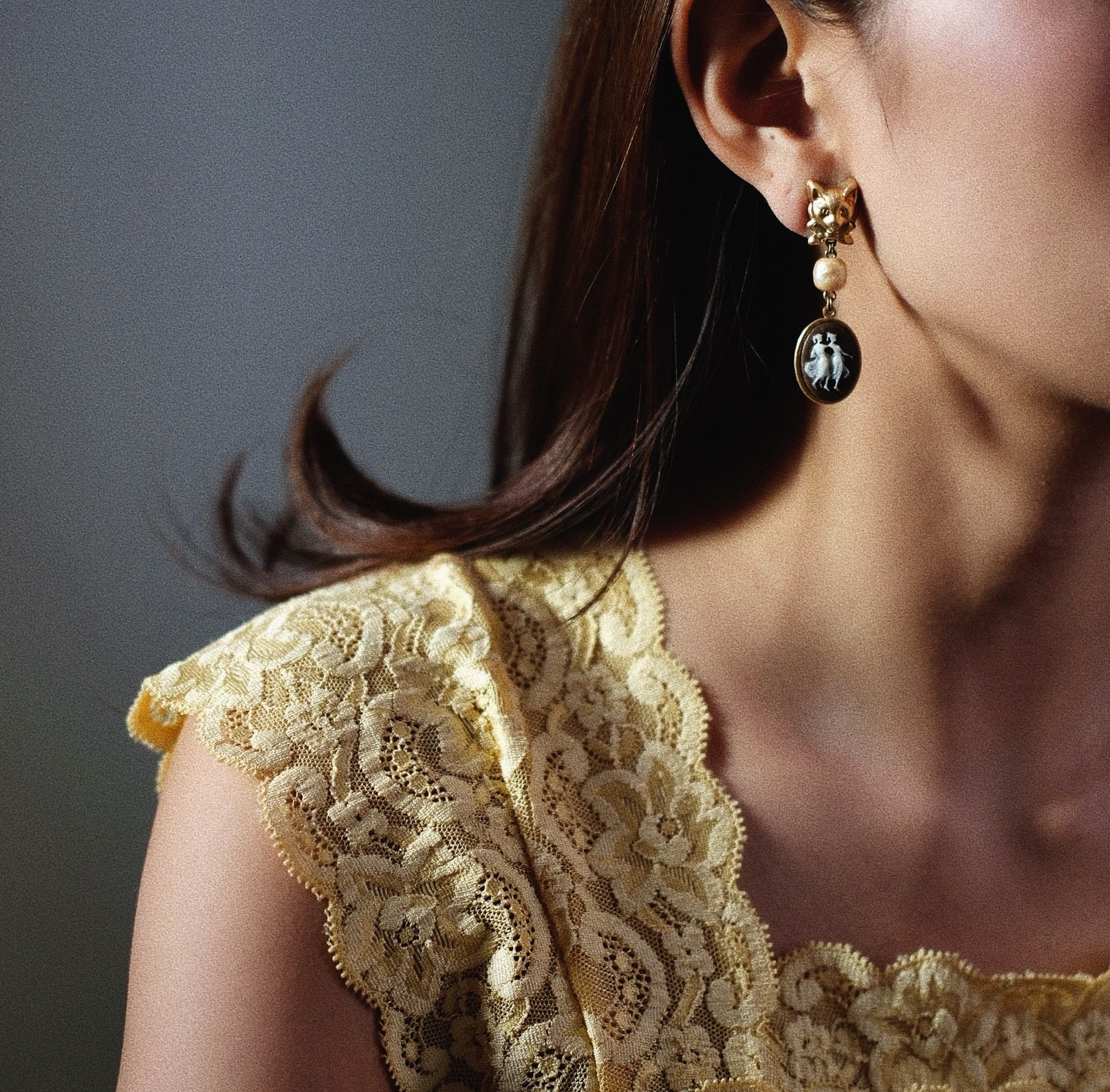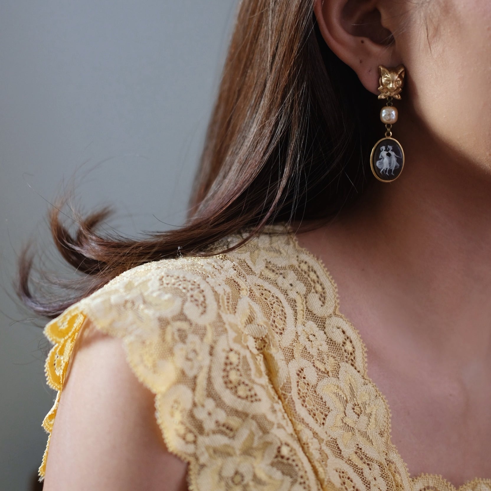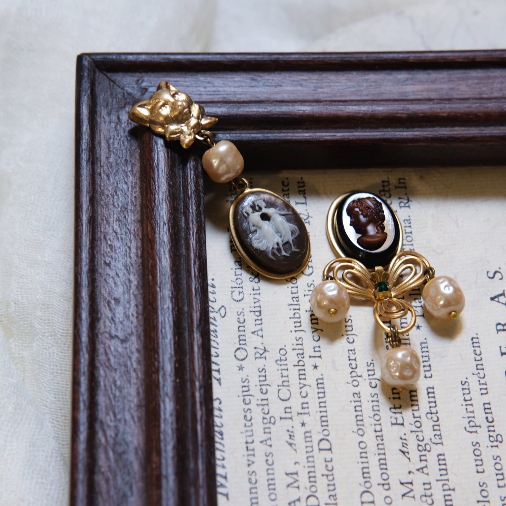 materials: raw brass, baroque glass pearl, swarovski、antique Germany cameo