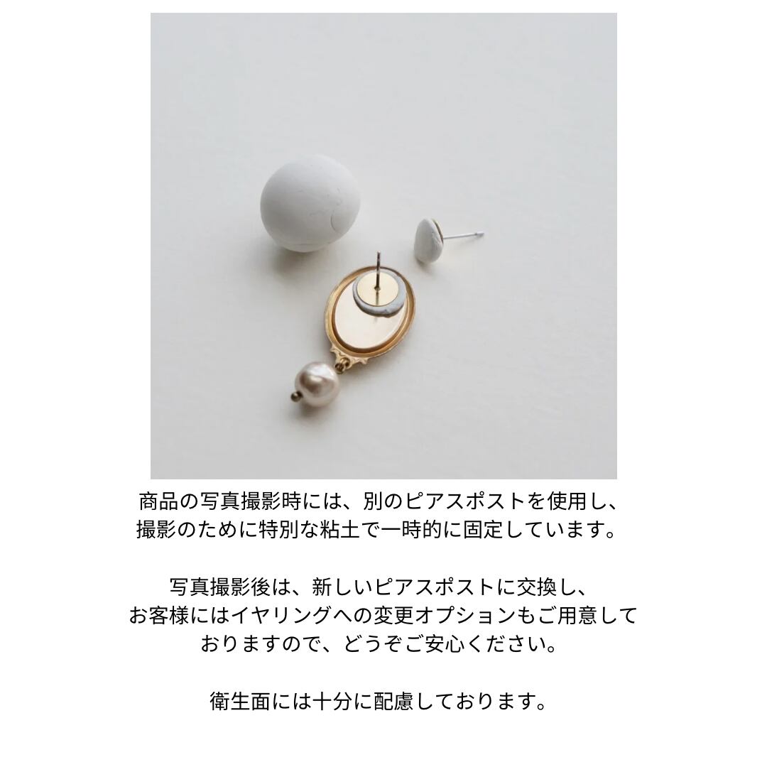 • When taking photos of the earrings being worn, I use a different piercing post and temporarily attach it with special clay for photography purposes.