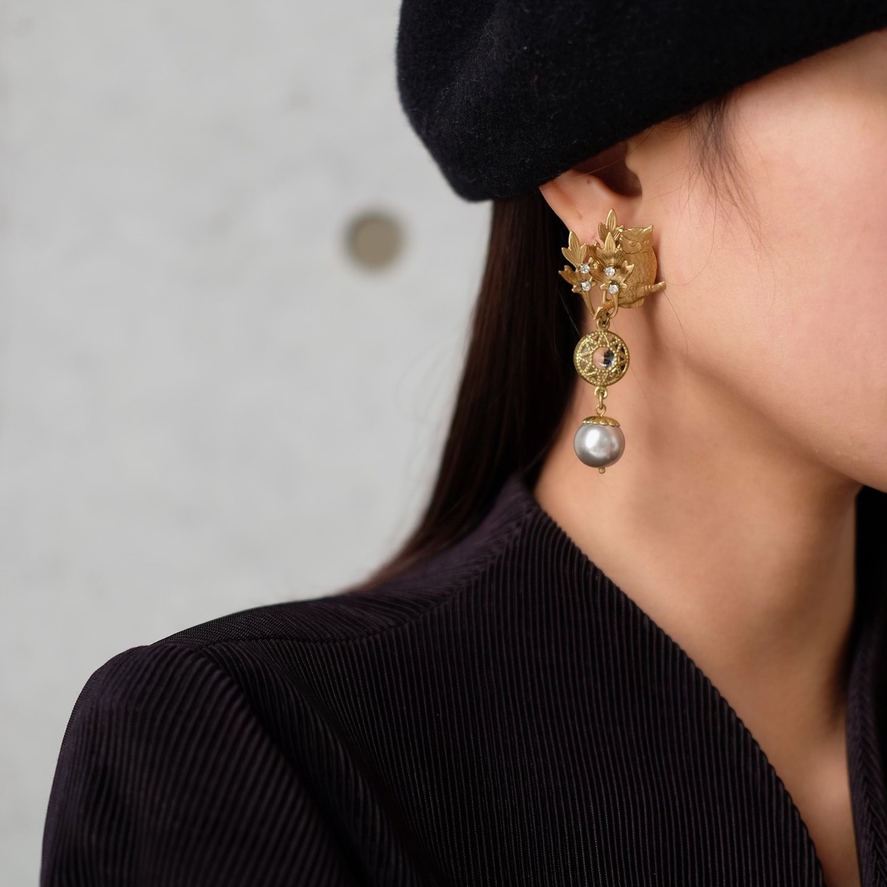 こちらは真鍮パーツとヴィンテージを含んだピアスです。