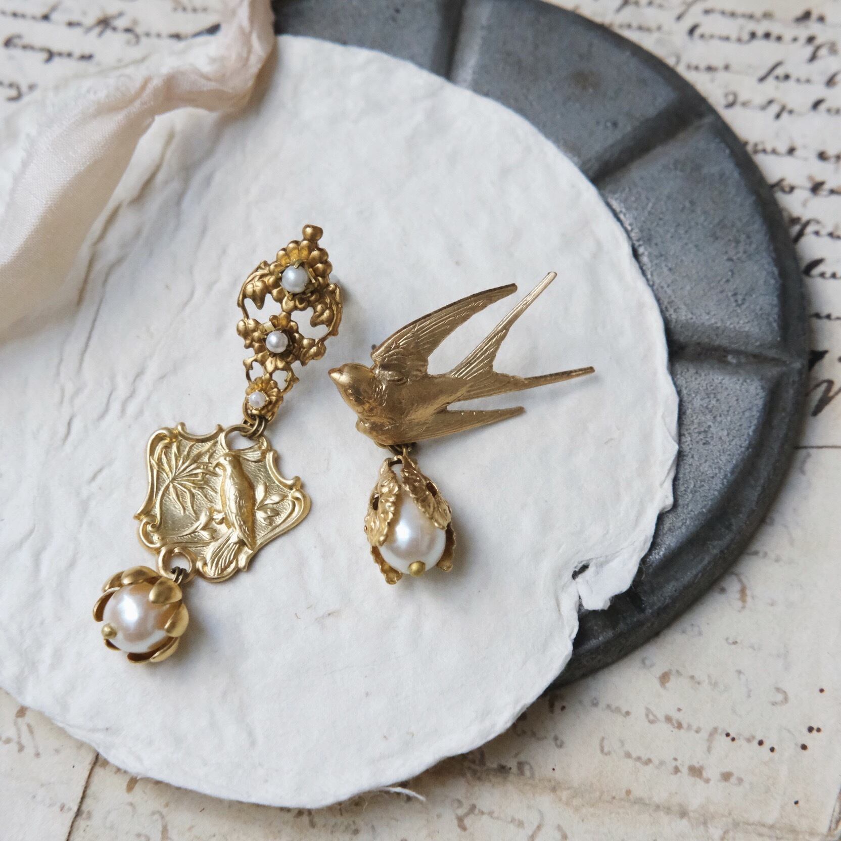こちらは真鍮パーツとヴィンテージを含んだピアスです。