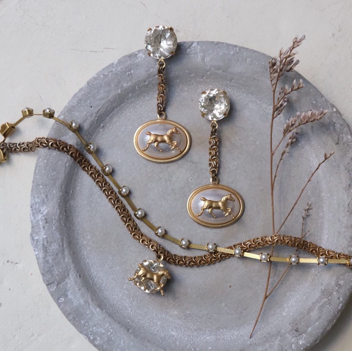 materials: 真鍮、ヴィンテージパーツ、グラスストーン