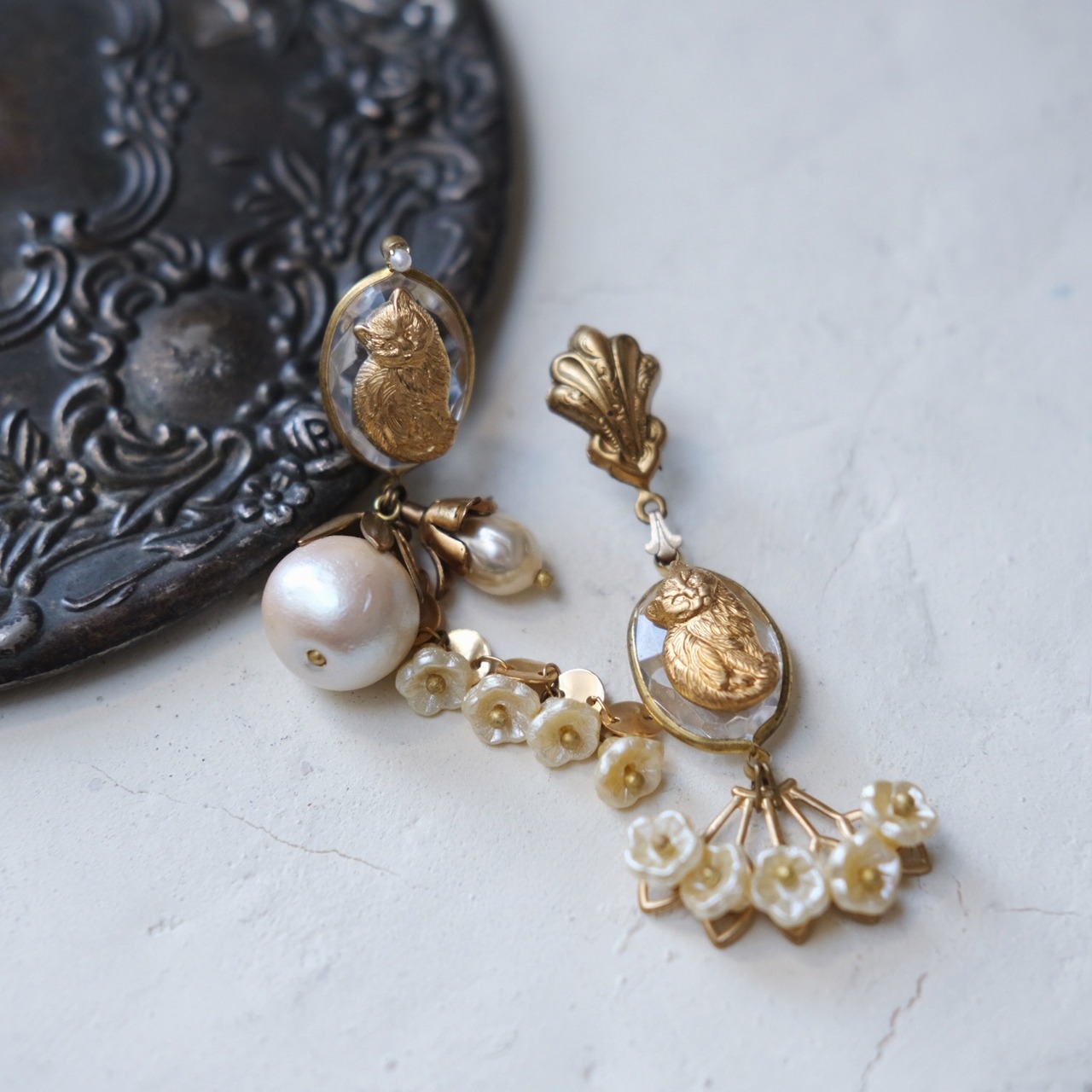 こちらは真鍮パーツとヴィンテージを含んだピアスです。