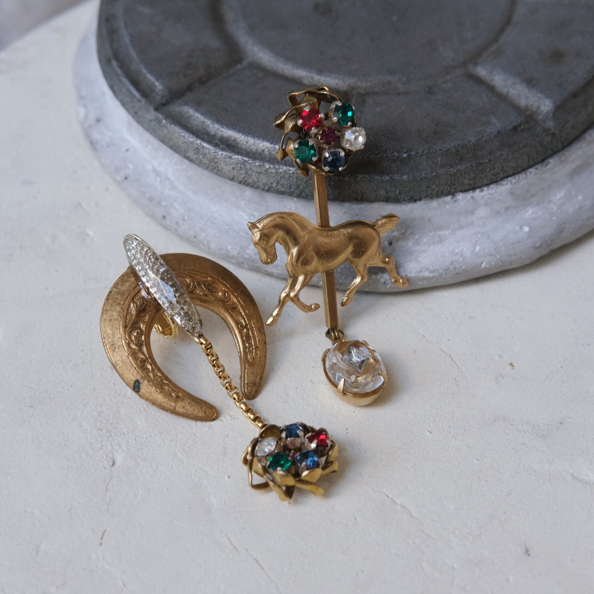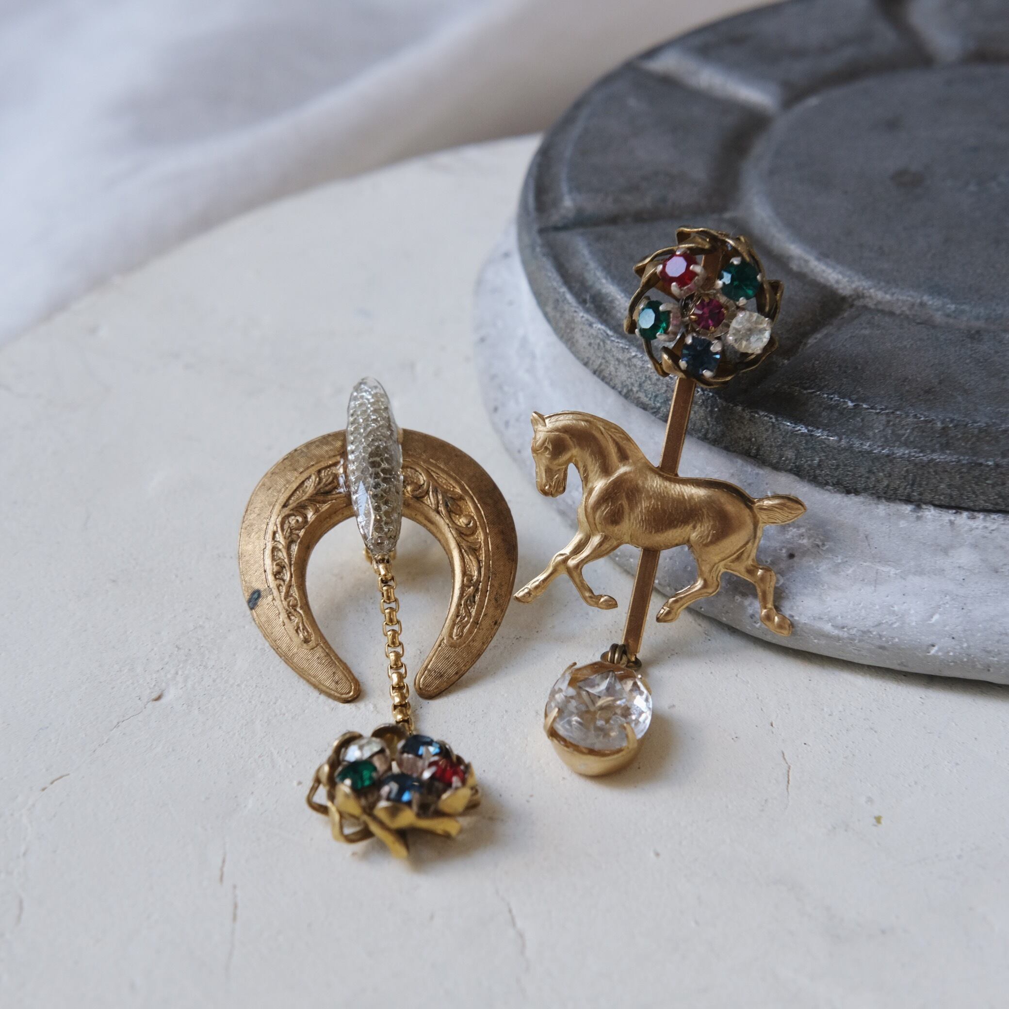 こちらは真鍮パーツとヴィンテージを含んだピアスです。