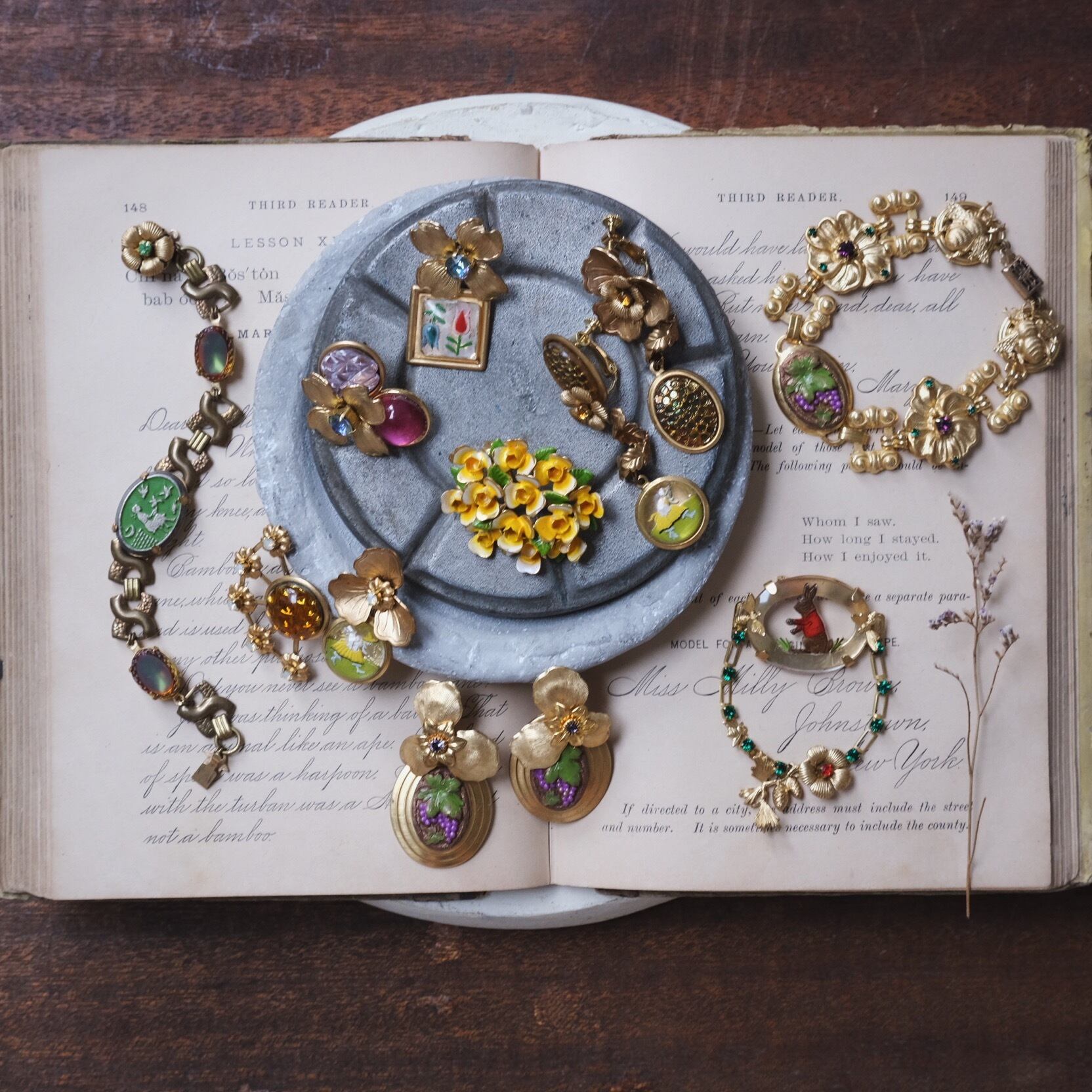 こちらは真鍮パーツとヴィンテージを含んだイヤリングです。