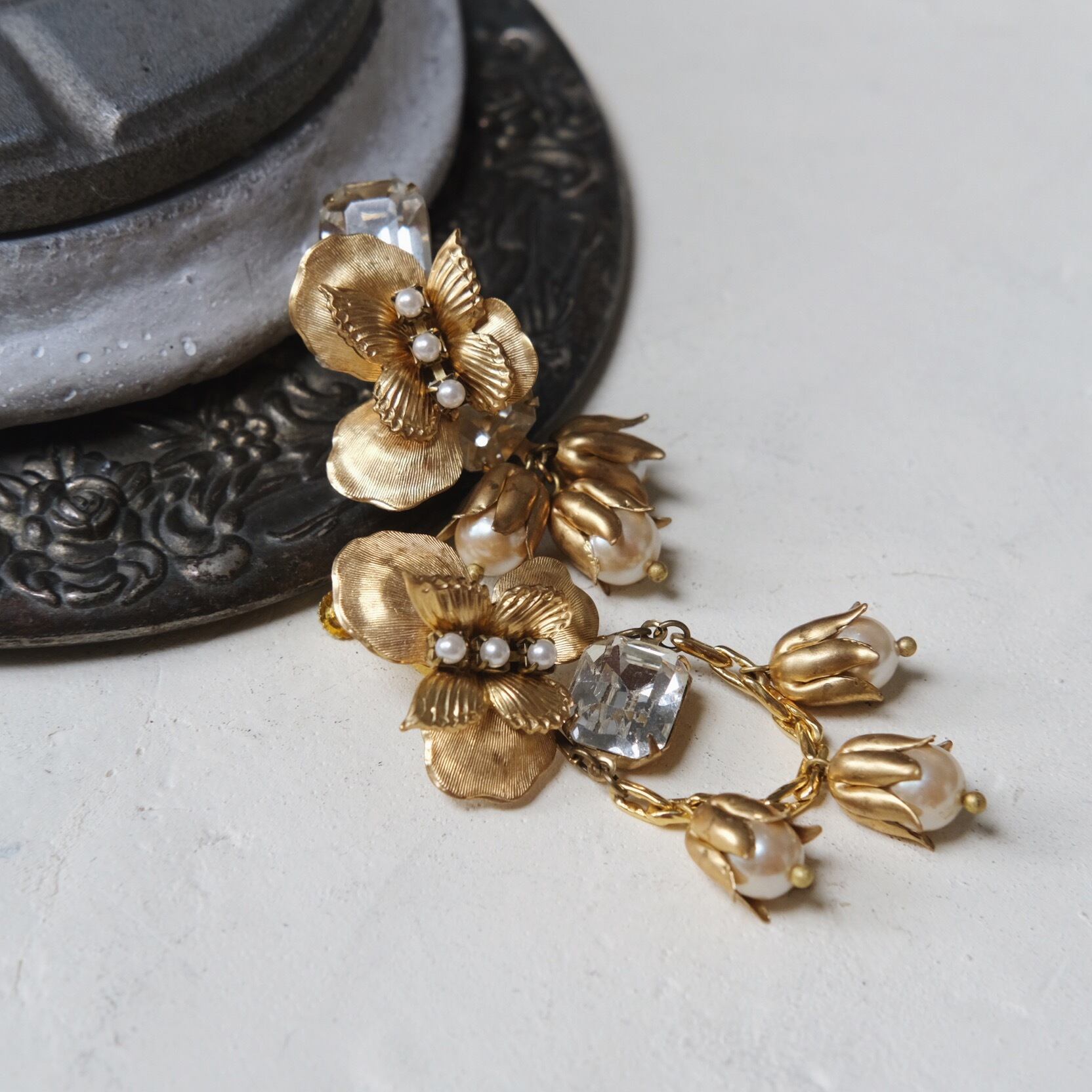 こちらは真鍮パーツとヴィンテージを含んだイヤリングです。