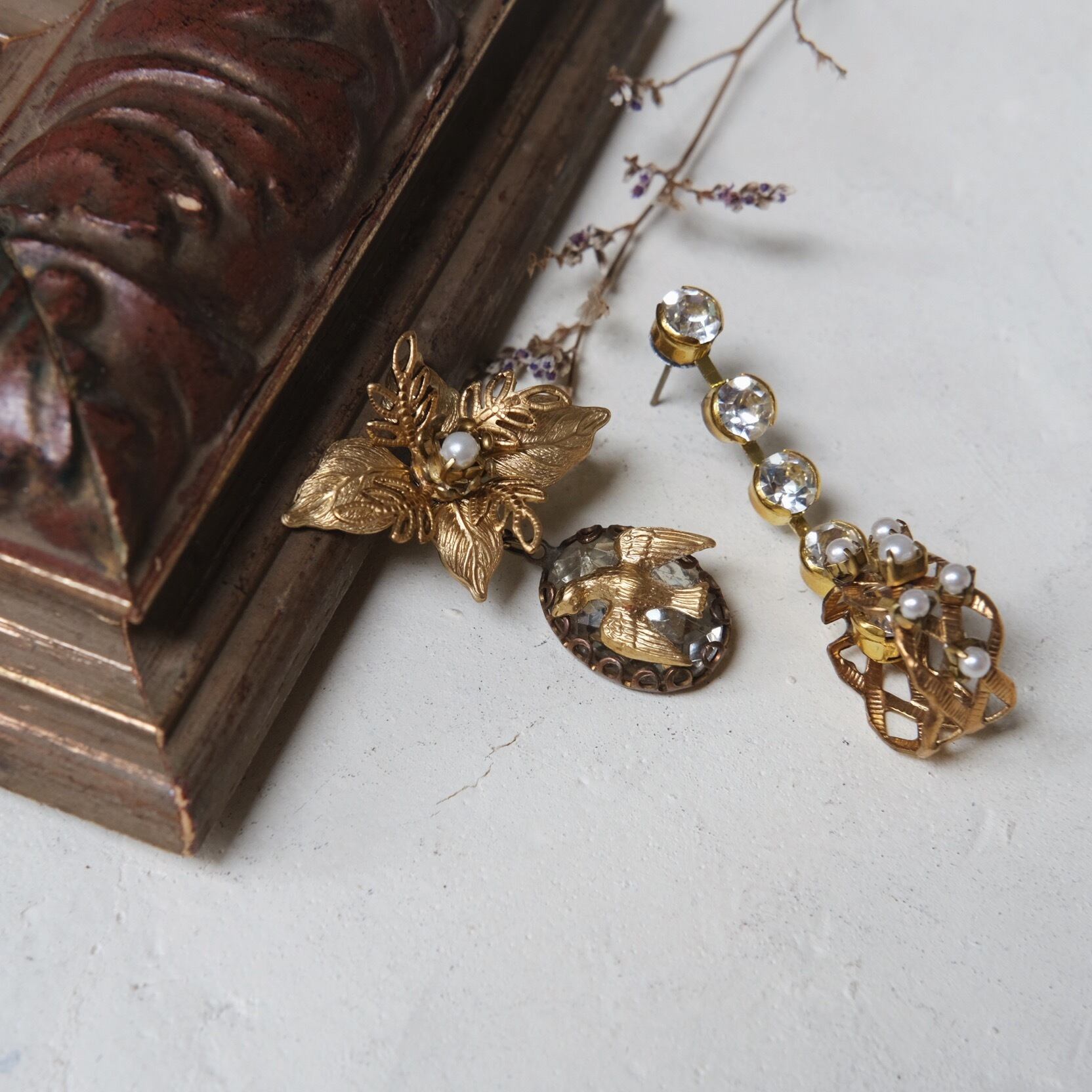 こちらは真鍮パーツとヴィンテージを含んだピアスです。