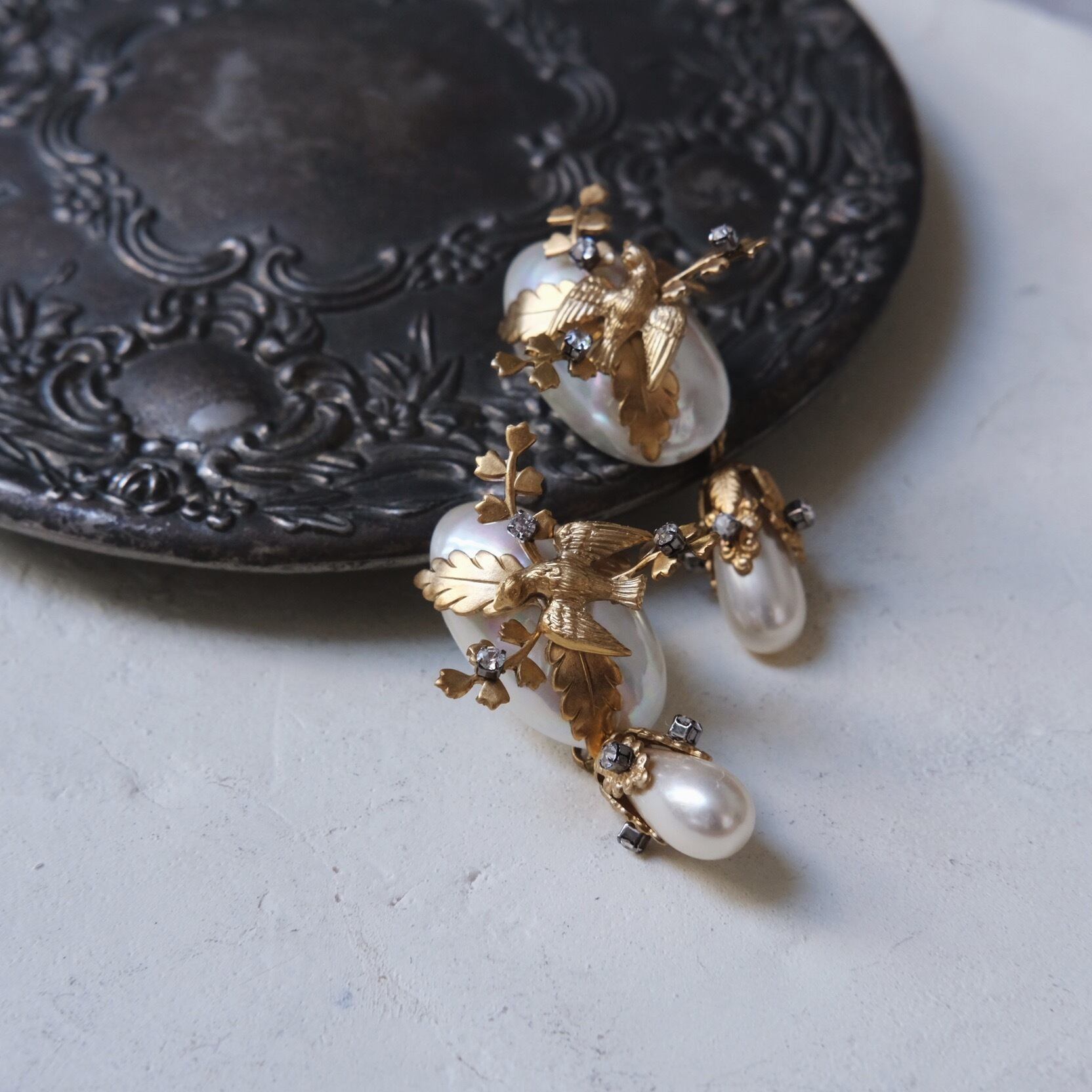 こちらは真鍮パーツとヴィンテージを含んだピアスです。