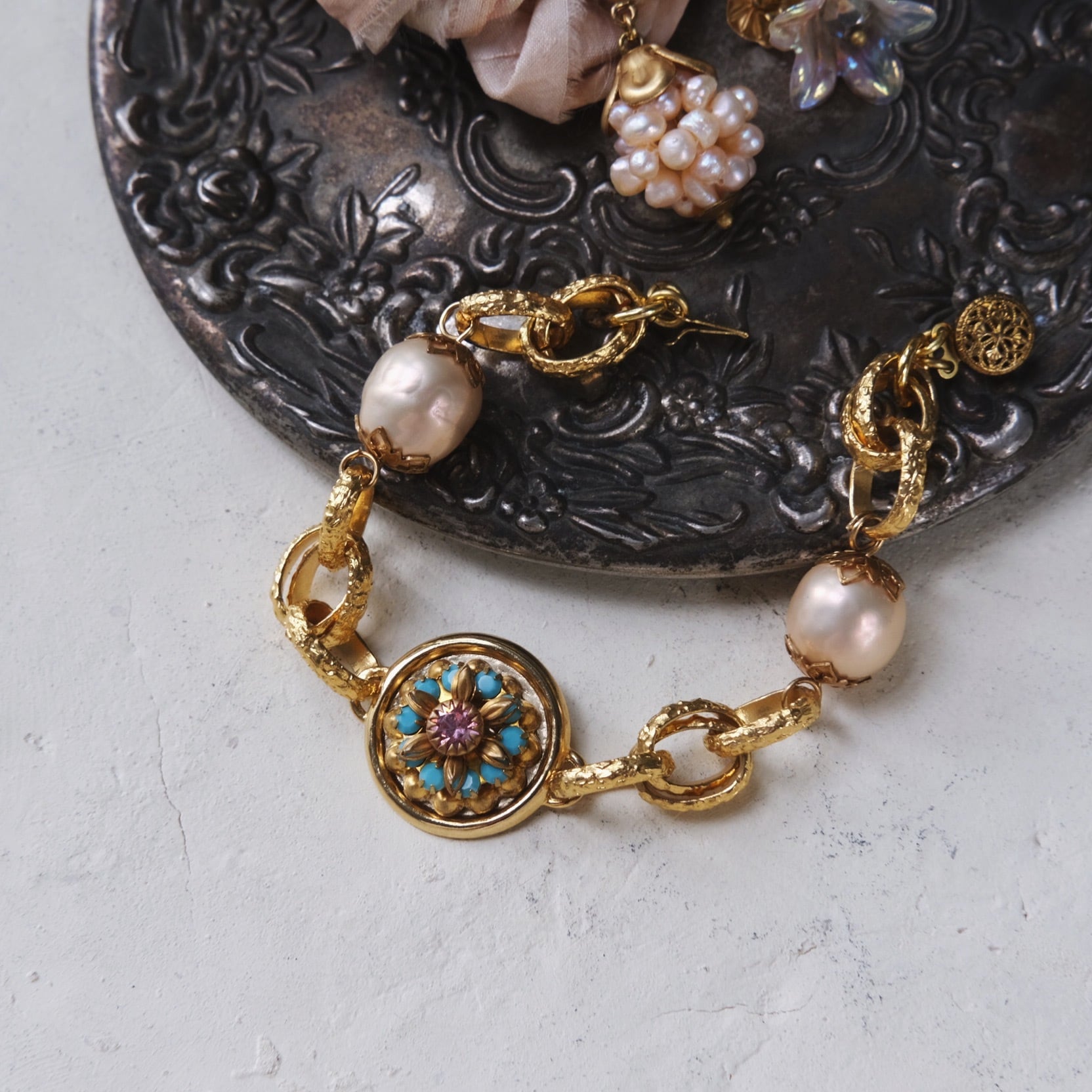 materials: 真鍮、ガラスパール、スワロフスキー、ヴィンテージパーツ