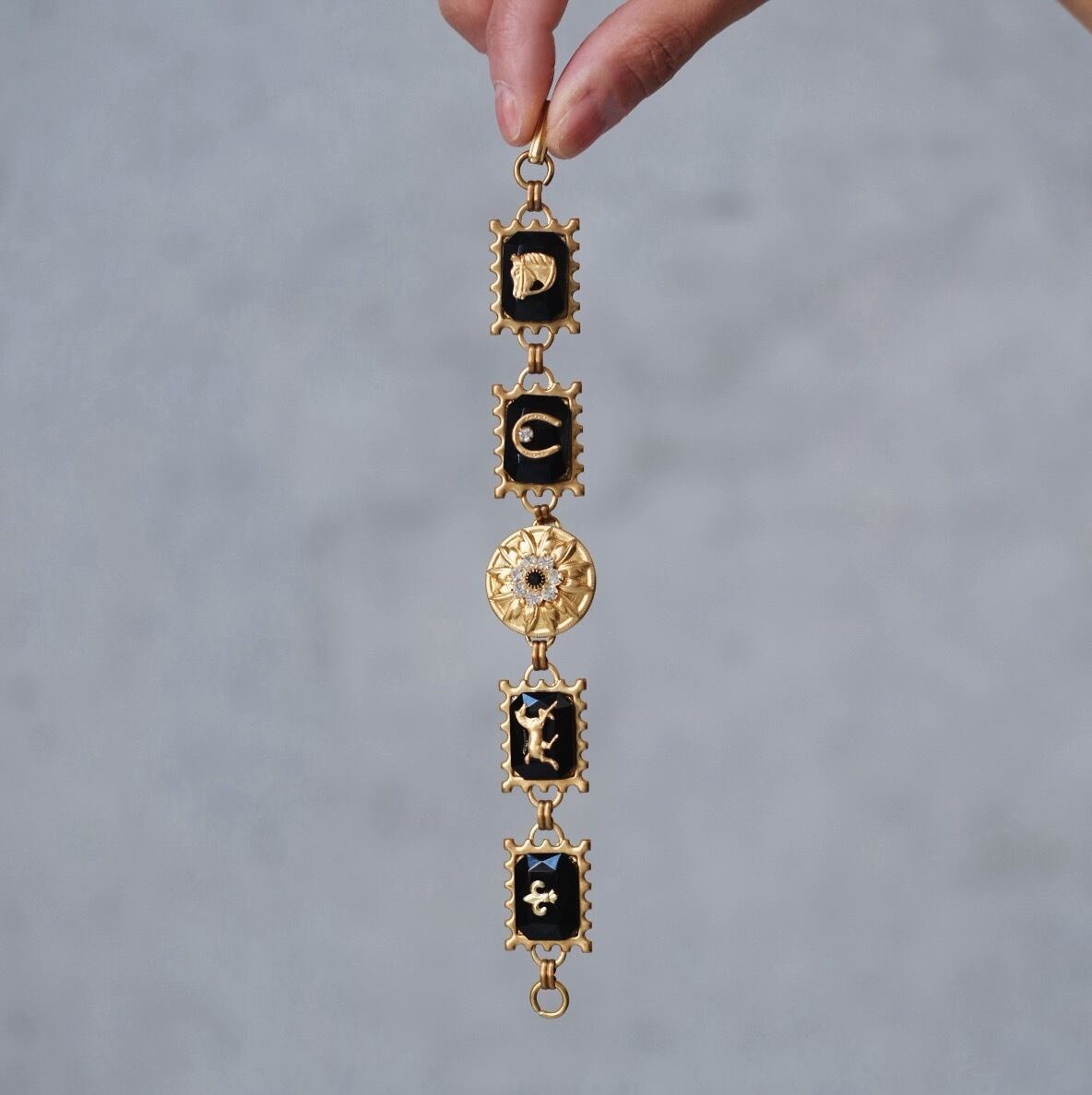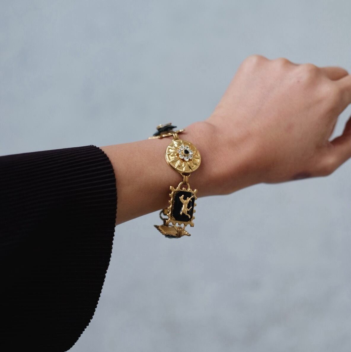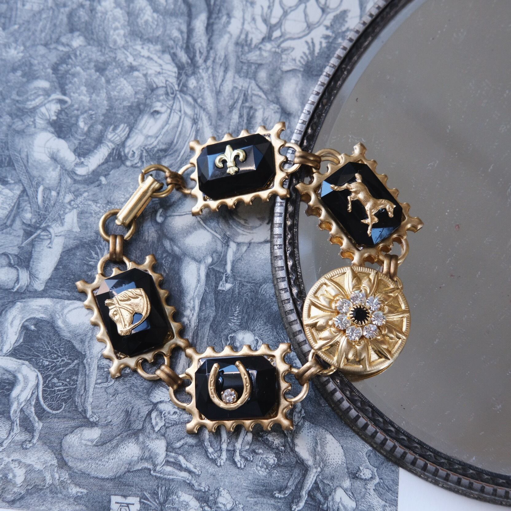 materials: 真鍮、ドイツ製オクタゴンカボション、スワロフスキー、ヴィンテージパーツ