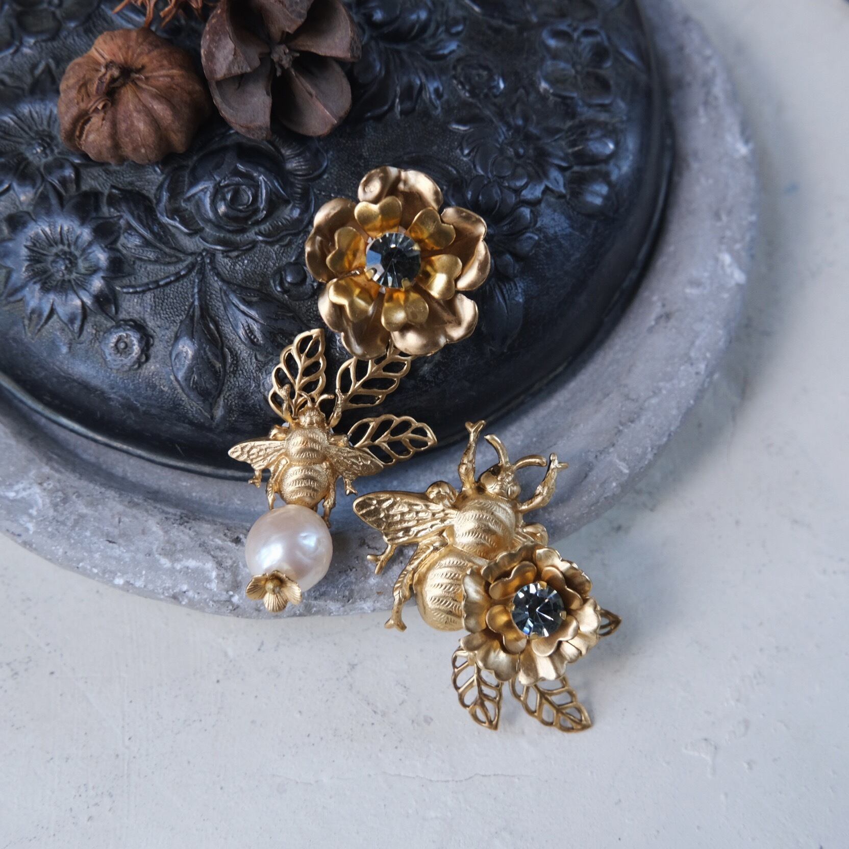 こちらは真鍮パーツとヴィンテージを含んだピアスです。