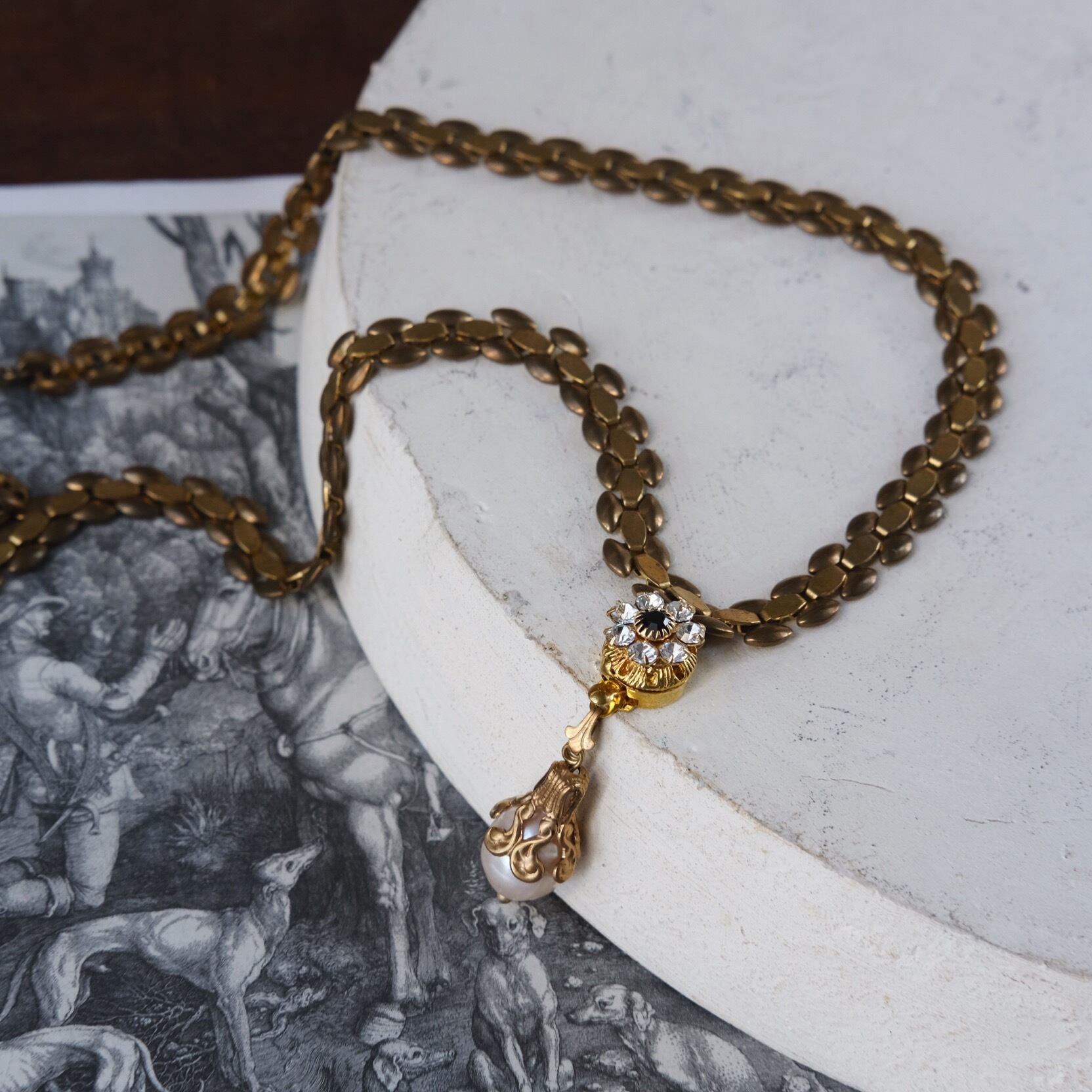 materials: 真鍮、スワロフスキー、バロックガラスパール、ヴィンテージパーツ