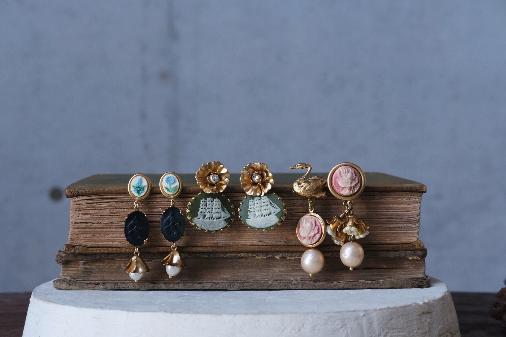 materials: 真鍮、W. Germany cameo、ガラスパール、ヴィンテージパーツ