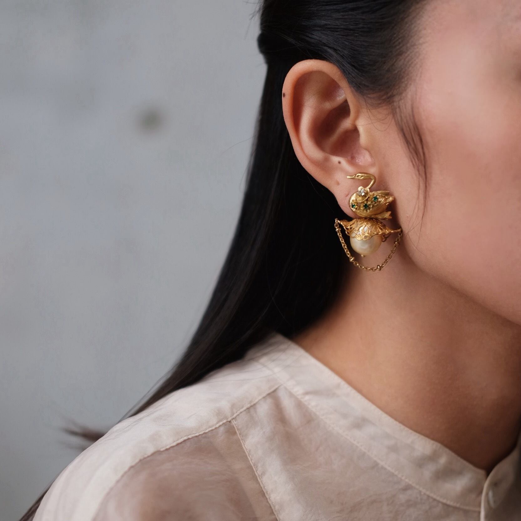 materials: 真鍮、ヴィンテージ バロックパール、スワロフスキー