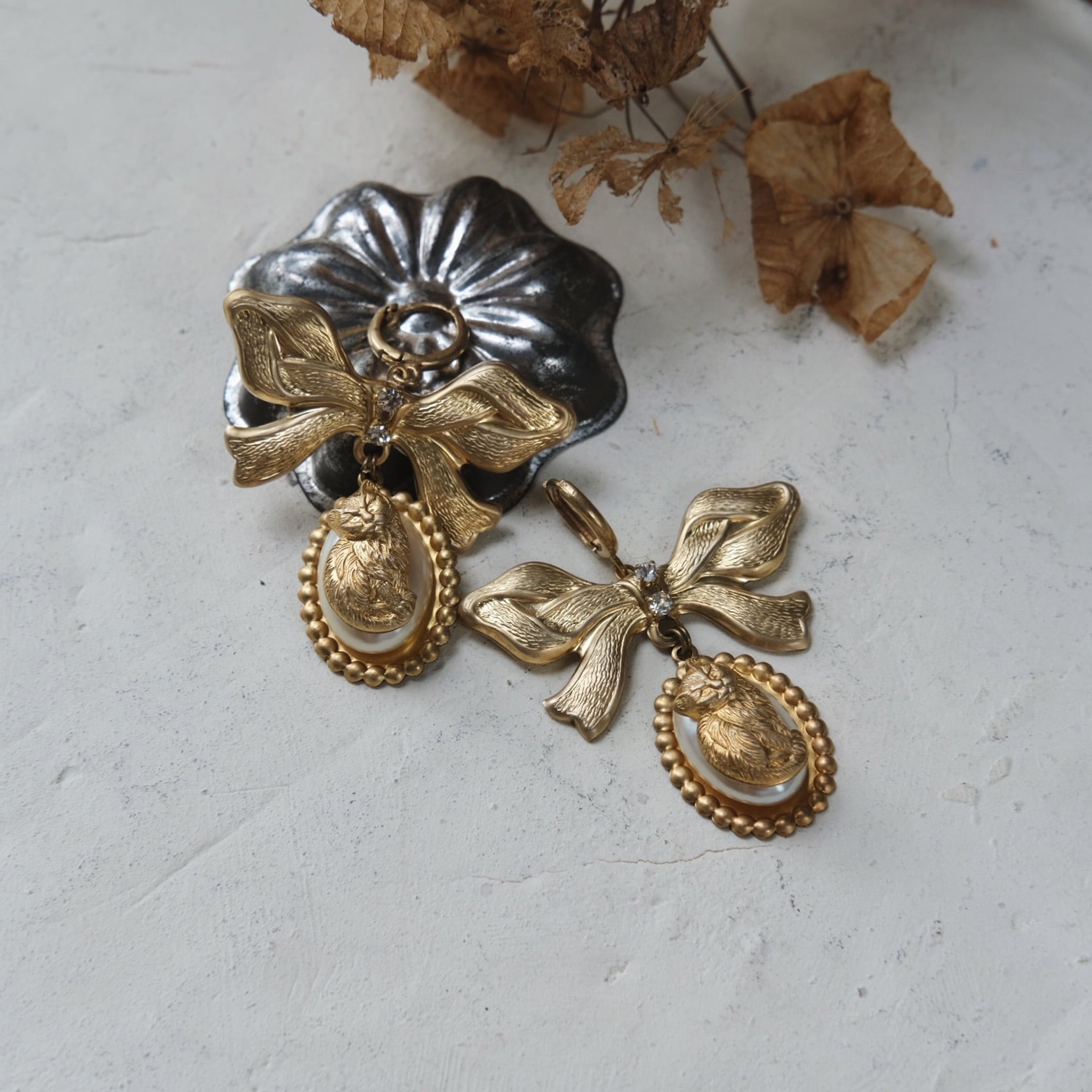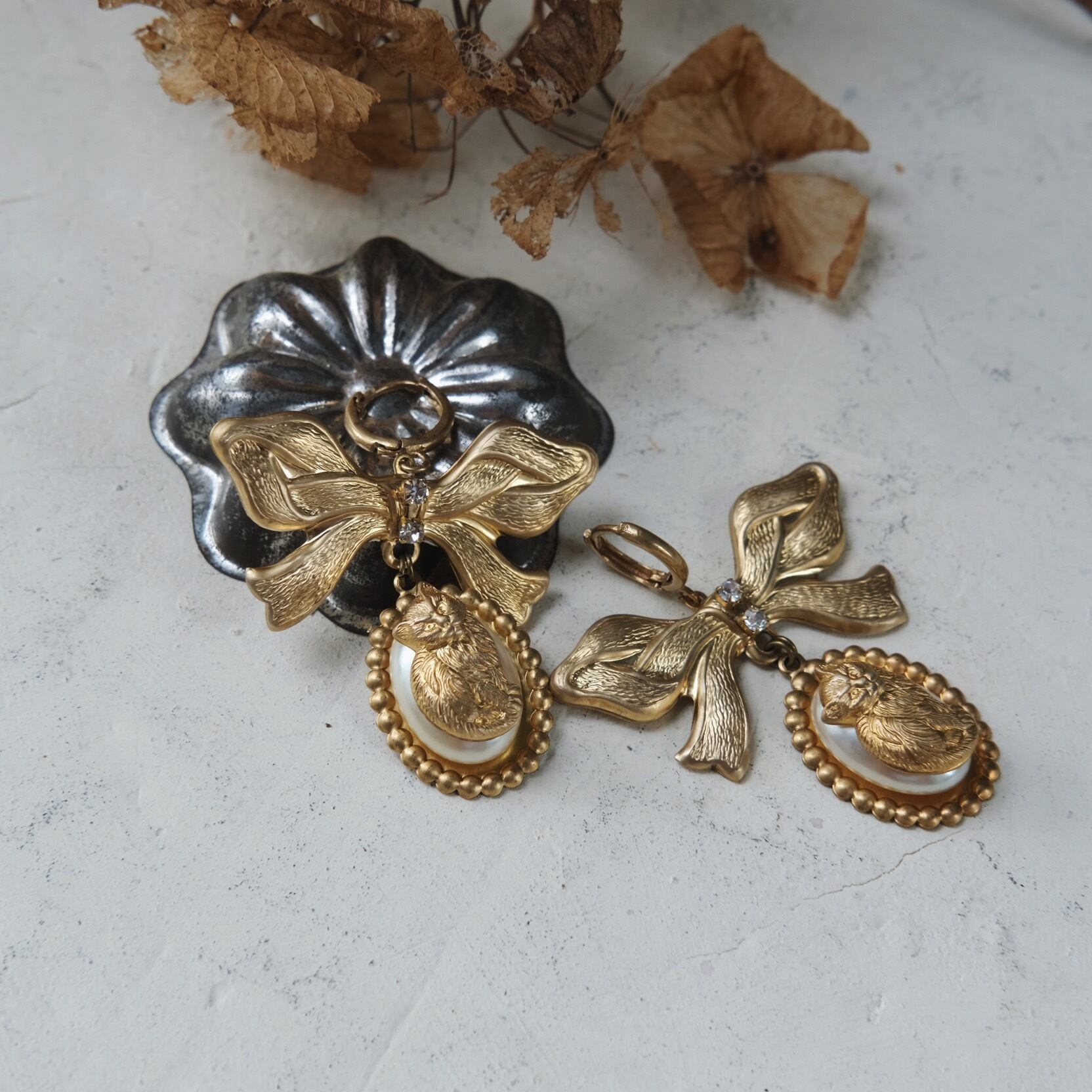 materials: ヴィンテージ真鍮パーツ、スワロフスキー、ガラスパール