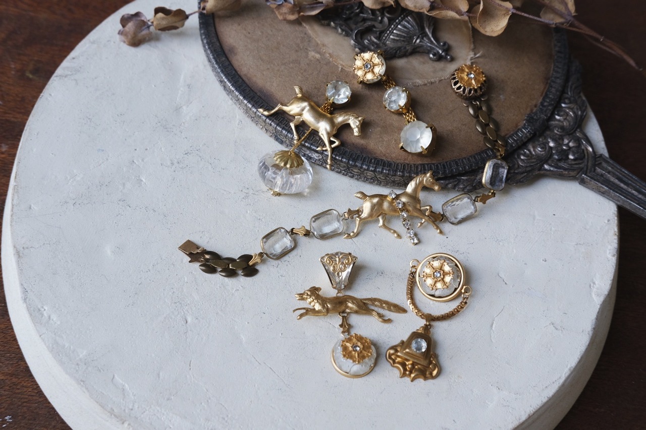 size: materials: 真鍮、ガラスビーズ、ヴィンテージパーツ