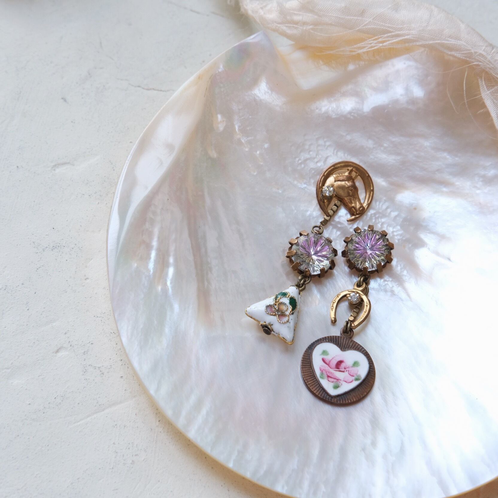 materials: 真鍮、Vintage France Guilloche enamel、French Cloisonne、ドイツガラスストーン、スワロフスキー