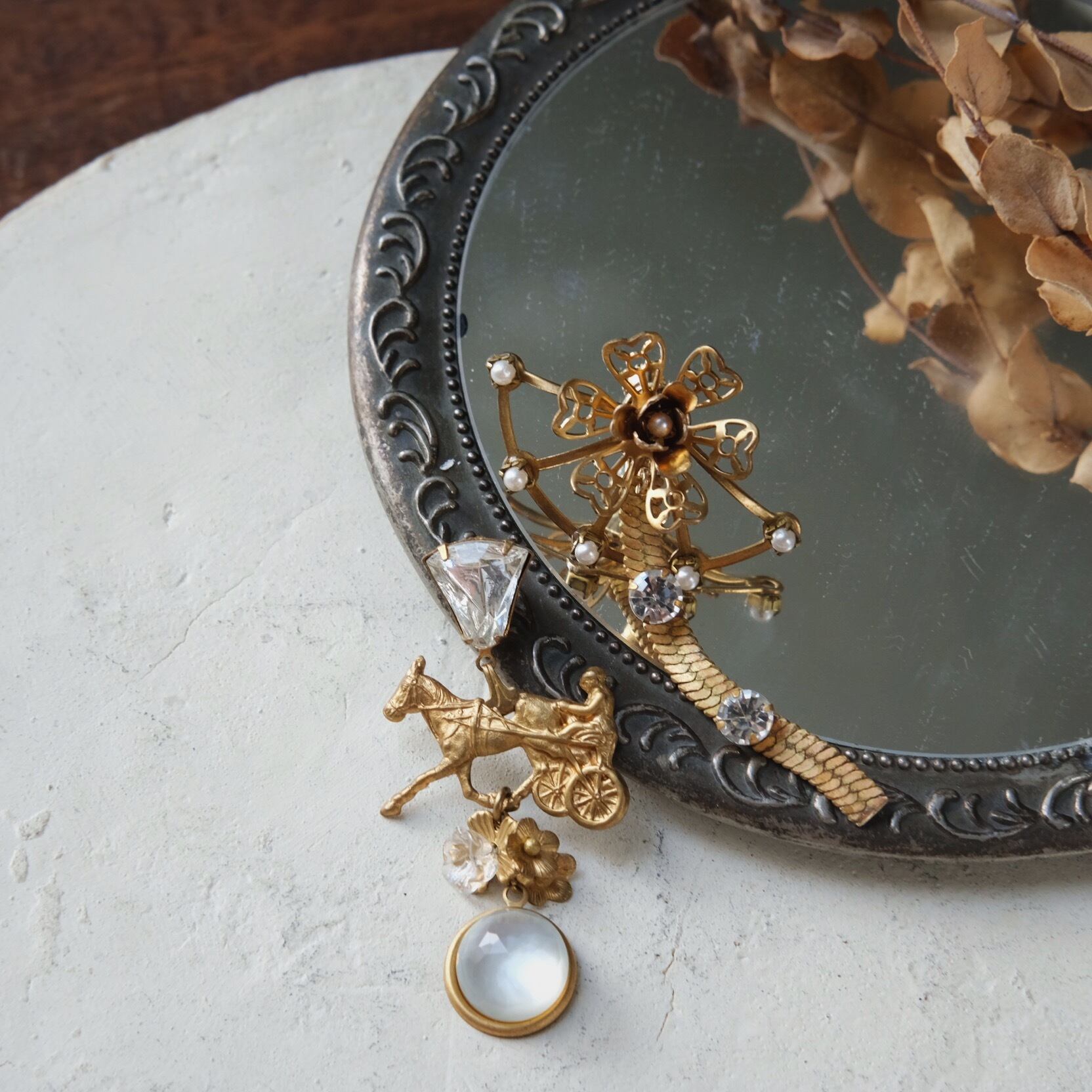 materials: 真鍮、マザーオブパールカボション、ガラス フラワー
